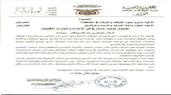 ضجت منصات التواصل الاجتماعي ومازال احدة في هذه الاثناء مرده صدور تعميم الاول من نوعه لصاحبه الشيخ تركي عبدالله الوادعي ، وزير الاوقاف والإرشاد. وخص ال...