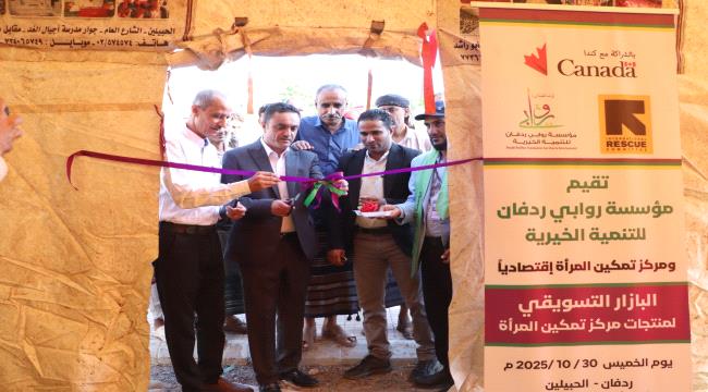 دشن مدير عام مديرية ردفان الشيخ فضل القطيبي ومدير عام مكتب الشؤون الاجتماعية والعمل بمحافظة لحج الاستاذ صائب عبدالعزيز ومدير عام مكتب التعليم الفني والتدريب المهني المهندس ايمن الشحيري ومحمود عبدالكريم رئيس تنفيذية انتقالي مديرية ردفان البازار التسويقي لمنتجات مركز تمكين المرأة اقتصاديا الذي تقيمه مؤسسة روابي ردفان للتنمية الخيرية.