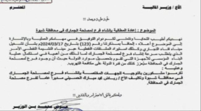 أكدت السلطة المحلية بمحافظة شبوة أنها ما تزال تبذل جهودًا حثيثة لضبط موارد الدولة ومكافحة التهريب، رغم غياب التجاوب من الجهات المركزية المختصة، وذلك في إطار متابعتها لما تضمنه قرار مجلس القيادة الرئاسي بشأن ميناء قنا التجاري. وأوضحت السلطة المحلية أن قرار إدراج ميناء قنا ضمن الموانئ “غير القانونية” جاء رغم صدور توجيهات رئاسية وقرار لمجلس الوزراء بالإجماع بإنشائه وتشغيله، مشيرةً إلى أن الجهود في المحافظة مستمرة لاستكمال الإجراءات الفنية والإدارية اللازمة لبناء الميناء وفق الأطر النظامية والقانونية. وفي هذا السياق، وجه محافظ محافظة شبوة، رئيس المجلس المحلي، الشيخ عوض محمد بن الوزير، مذكرة رسمية إلى معالي وزير المالية – رئيس مجلس الوزراء حاليًا – بتاريخ 24 أبريل 2025م، طالب فيها بسرعة إنشاء فرع لمصلحة الجمارك في المحافظة. وجاء في المذكرة: “نظرًا لأهمية استكمال البناء المؤسسي للأجهزة الإيرادية التابعة للدولة، نؤكد على ضرورة إنشاء فرع لمصلحة الجمارك بمحافظة شبوة لما يمثله من أهمية في تحصيل موارد الدولة وتعزيز قدرتها على مكافحة التهريب وتنظيم حركة التجارة”، مقترحًا تكليف الأخ رياض محمد مبارك الحسيني مديرًا عامًا للفرع. واختتمت قيادة محافظة شبوة بيانها بالتأكيد على التزامها الكامل بالأنظمة والقوانين الصادرة عن مجلس القيادة الرئاسي ومجلس الوزراء، وحرصها على ترسيخ مبدأ الدولة وبناء مؤسساتها على أسس قانونية ومهنية تضمن العدالة والمساءلة وسيادة القانون.