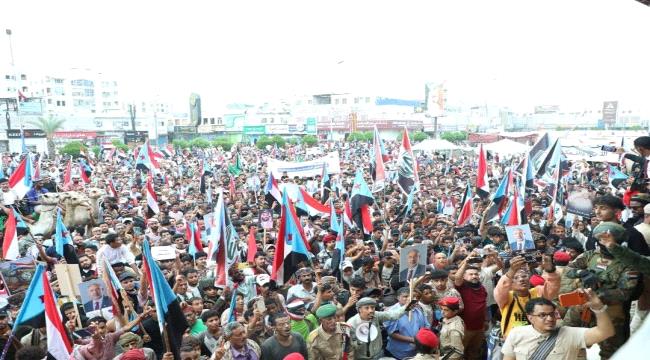 ودخلت الوفود الجماهيرية القادمة من مديريات ردفان، والشيخ عثمان وخور مكسر، ساحة الاعتصام وسط هتافات ثورية وشعارات وطنية عبّرت عن التفاف الشارع الجنوبي حول قيادته السياسية، مطالبة القيادة الجنوبية، ممثلة بالرئيس القائد عيدروس الزُبيدي، بإعلان دولة الجنوب العربي كاملة السيادة.