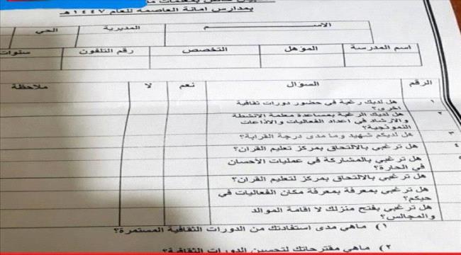 لعهن إلى أدوار استخباراتية وتعبوية بعيدة عن مهامهن التربوية. وبحسب ما تضمنته الوثيقة، تشمل الإجراءات المقترحة تحويل منازل بعض المعلمات إلى مجالس مفتوحة، وربطهن مباشرة بمشرفي الأحياء، إلى جانب إخضاع الكادر التعليمي لعمليات فرز قائمة على معيار الولاء.